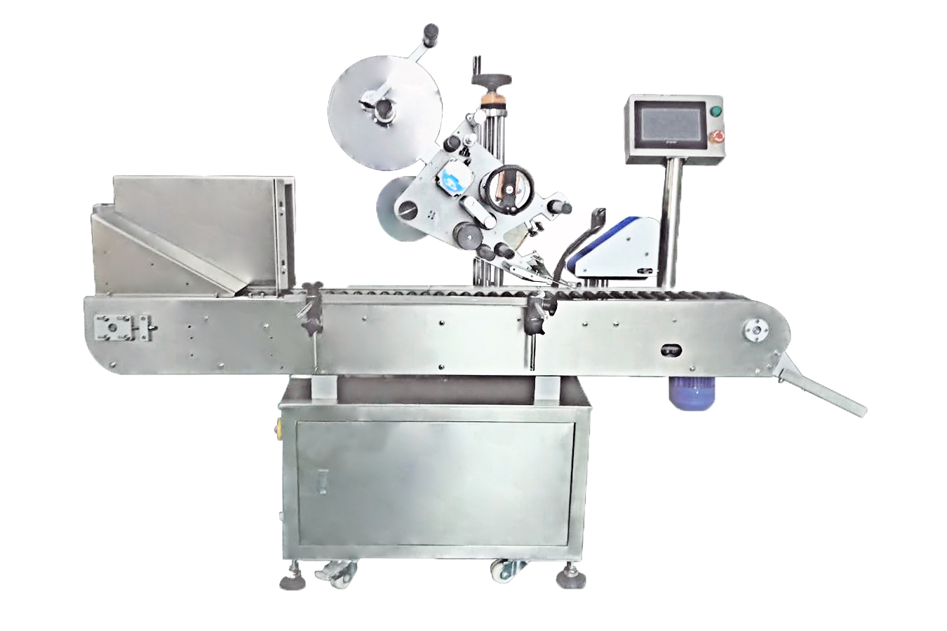全自動臥式圓瓶貼標機,適用小型圓周產品單標貼標。設備可單獨使用,可對接灌裝線、理瓶機、套標機連線使用。可選配色帶打碼機和噴碼機,實現在標簽上打印生產日期和批號信息,實現貼標-賦碼一體化。適用臥式貼標的常見產品有:口服液、火腿腸、固體膠、筆、精華液等